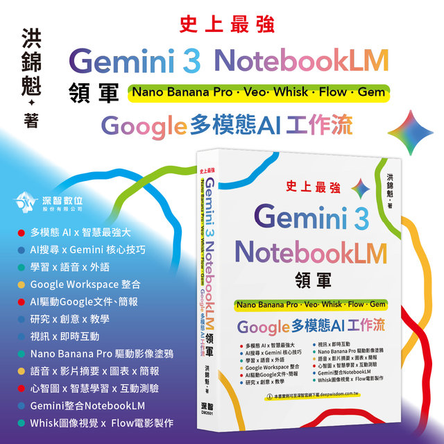 Gemini 3 x NotebookLM 領軍:Nano Banana Pro x Veo x Whisk x Flow x Gem - Google 多模態 AI 工作流$650$514 -